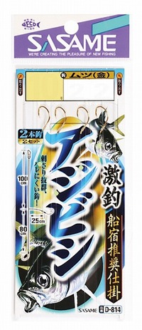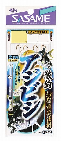 ささめ針 ササメ D-814 激釣アジビシ2本鈎(金) 鈎9号-ハリス1.5号