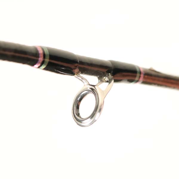 標準全長(m):2.06 継数(本):2 仕舞(cm):162 標準自重(g):115 先径(mm):0.9(0.8) 元径(mm):10.9 錘負ルアー(g):40-100適合ラインPE(号):0.6-1.2 カーボン含有率(%):94