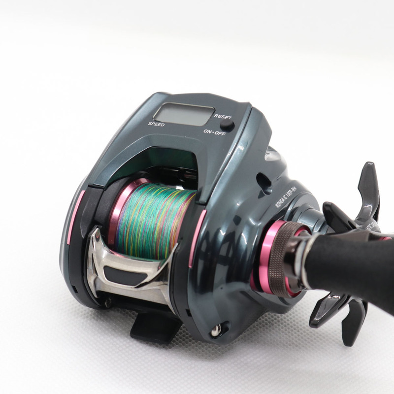 速度表示機能付きICカウンター搭載、ハイパワー・軽量タイラバリール ●先鋭的なデザインを纏い、ソルトリールとして重要なタフさと軽量性、操作性を向上させたNEW紅牙IC。タイラバに最適な巻取り長さを実現した「楽巻き」コンセプトモデル。※掲載している商品の画像は代表画像を表示しています。また実物と色が違って見える場合があります。あらかじめご了承下さい。