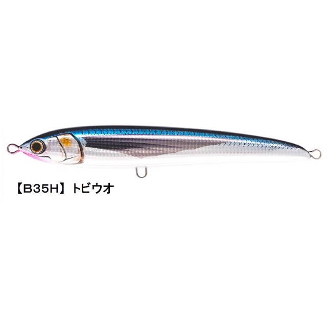 230mm−100g(フック・リング無し) 推奨フック:トリプル 太軸#4/0〜5/0クラス、シングル 8g〜11g/1本 推奨リング:大型リング #9 カラー:トビウオ