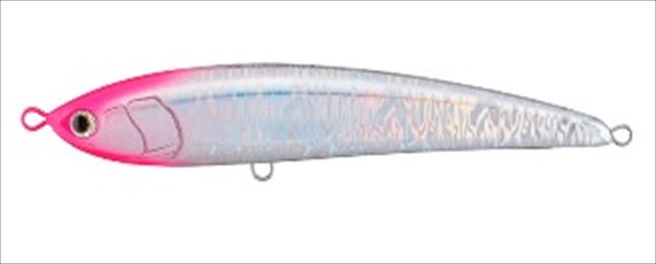 見切られる前に喰わす!高速リトリーブ対応ペンシル 。マグネット重心移動によりキャスト時は「カチーン!」とリア重心となり、安定した飛距離で広範囲をサーチ。 着水後はセンター重心に戻り、水平に近いスイム姿勢は高速リトリーブに対応し、トビウオやサンマなどの水面で動きが速いベイトを捕食しているときや、 日中・ベタ凪時の警戒心が高まるタイミングに有効。人気のクリアカラーをベースに、サイドホロ+ヘッドカラーを搭載し、フラッシングアピールとアングラーからの視認性両方を高めた万能カラー。