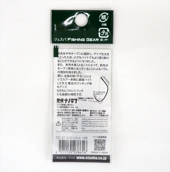 ヤリエ シングルフック STフック ナノテフ 10号【即日発送】