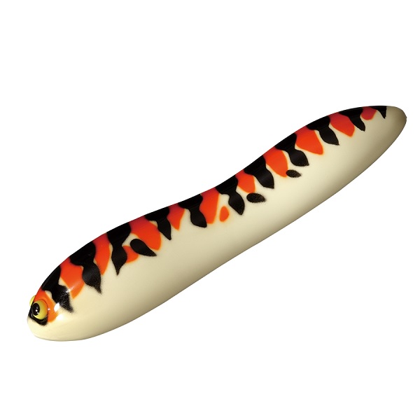 羽鳥静夫さんの手から生まれた「ハトリーズ」。数多くの名作ルアーの中で、釣り仲間が最高傑作と認めるのが「インナーハンドW.B.」(手の中のみずすまし=Water Beatle)。その形状から別名「ひょうたん」と呼んでいたこのペンシルの、その水絡みとスライディング能力は当時の私たちに衝撃を与えました。 当時は、自分で使う分だけを作っては釣行に使用していましたが、なぜかバスを何本か釣ってボディーに歯型がつくと「気持ちが良くない!」と言っては、同船した親しい仲間にあげる事が多かったので、多くの仲間があの手この手で※掲載している商品の画像は代表画像を表示しています。また実物と色が違って見える場合があります。あらかじめご了承下さい。