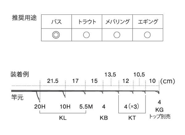 スピニング バス用 ※トップガイドは別売りです。ティップ径に合わせてお選びください。