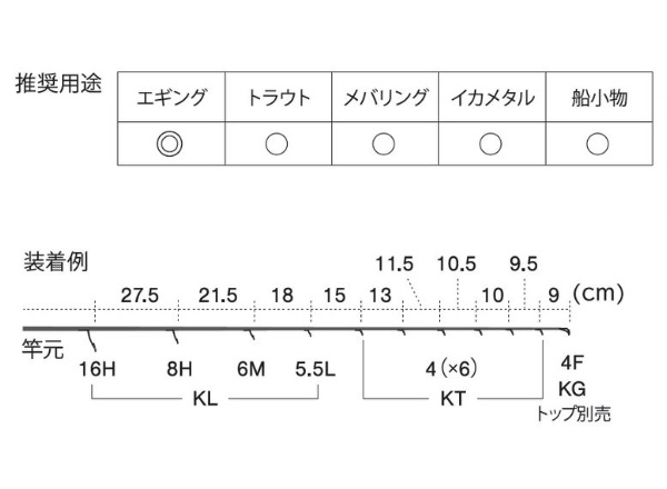 ガイド数:10個(トップガイド別売) 標準全長:7ft〜9ft 推奨ライン:4lb〜8lb(PE MAX1.0号) ※標準全長より長いブランクスの場合は、推奨ガイドをティップ部分に追加してください。