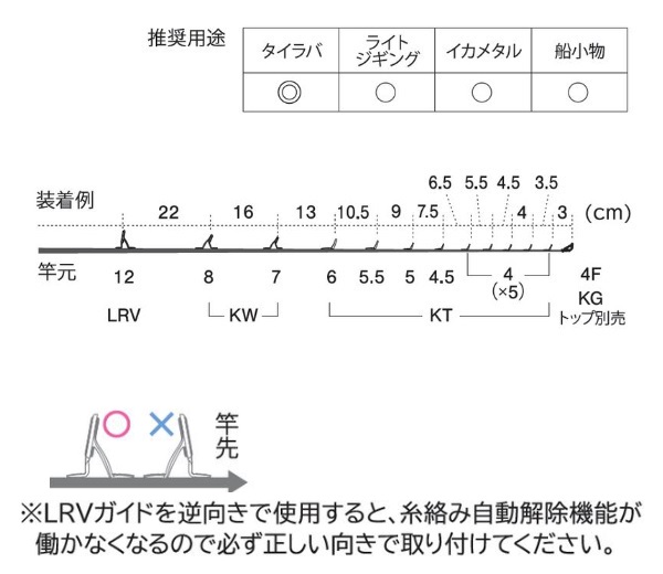 ガイド数:12個(トップガイド別売) 標準全長:6ft〜7ft 推奨ライン:4lb〜12lb(PE MAX1.0号) ※標準全長より長いブランクスの場合は、推奨ガイドをティップ部分に追加してください。