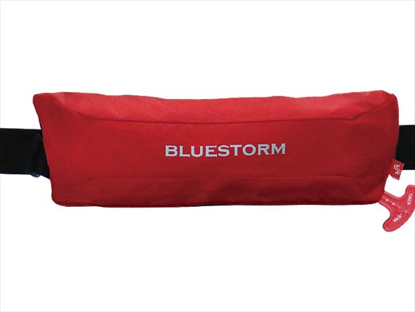 BLUESTORMウエストベルトタイプでもっともベーシックで最新の技術を凝縮させたライフジャケットです。 国土交通省型式承認小型船舶用救命胴衣 Type A、常時着用、省令改正にも対応します。 気室、設計を新規で作りなおし、コンパクトで軽量、かつType Aの型式基準を取得できるライフジャケットを開発しました。 今までのType A膨脹式のウエストベルトタイプのモデルよりもサイズを1/2まで小型化することに成功。 小型化するための新たなテクノロジー【レールシステム】を採用しています。(※特許出願中)コンパクトになっても浮力、浮遊性能、落水後の膨脹などはベーシックモデルに引けを取らない性能です。ハルキーロバーツ社製HR 6Fシングルインジケーター付き充気装置を採用。 未使用のボンベが正しく装着されており、かつインジケーターがグリーンであれば、使用可能。カートリッジが使用済み、または正しく装着されていない場合はインジケーターがレッドに変わります。カートリッジの装着状態、使用状態がそれぞれ一目で確認できます。 気室の膨脹には、16g炭酸ガスボンベを使用し、7.5kg以上/24時間以上(初期浮力 約9.0kg)の浮力を作り出します。※掲載している商品の画像は代表画像を表示しています。また実物と色が違って見える場合があります。あらかじめご了承下さい。