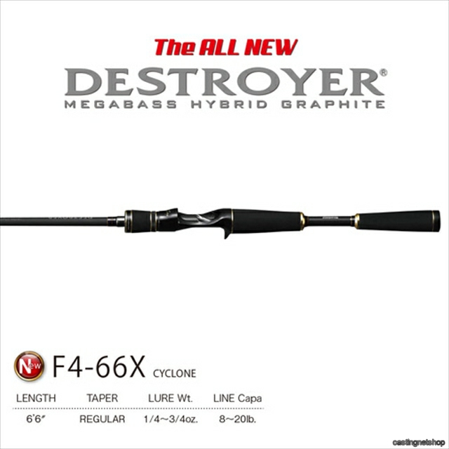 2016年モデル 商品名:デストロイヤー 種類:ベイトロッド素材:カーボン魚種:バスサブネーム:CYCLONE長さ:6 6″アクション:REGULARルアーキャパシティー:1/4〜3/4oz.ラインキャパシティー:8〜20lb.ロッドセクション:1ピース