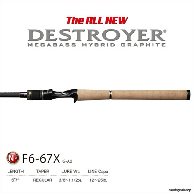 2016年モデル 商品名:デストロイヤー 種類:ベイトロッド素材:カーボン魚種:バスサブネーム:G-AX長さ:6 7″アクション:REGULARルアーキャパシティー:3/8〜1.1/2oz.ラインキャパシティー:12〜25lb.ロッドセクション:1ピース