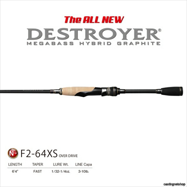 2016年モデル 商品名:デストロイヤー スピニング 種類:スピニングモデル素材:カーボン魚種:バスサブネーム:OVER DRIVE長さ:6'4"アクション:FASTルアーキャパシティー:1/32-1/4oz.ラインキャパシティー:3-10lb.