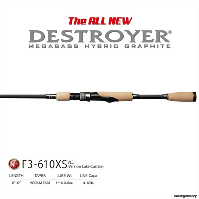 2016年モデル 商品名:デストロイヤー スピニング 種類:スピニングモデル素材:カーボン魚種:バスサブネーム:VLC -Version Lake Casitas-長さ:6'10"アクション:MEDIUM FASTルアーキャパシティー:1/16-3/8oz.ラインキャパシティー:4-12lb.ロッドセクション:1ピース
