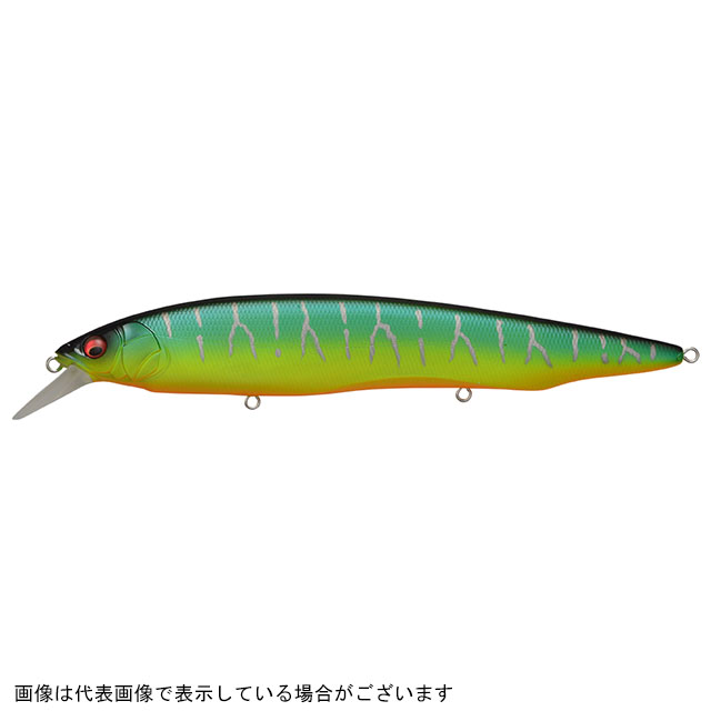 明らかに大きなベイトを捕食しているターゲットに対し、いかに見切られることなく、いかにテンポ良く誘うか。そんなテーマのもとに開発されたのが、ハイ・インパクトジャークベイト「KANATA」です。KANATA鮎は、160mmというビッグサイズにもかかわらず引き抵抗は極めて軽く、MHクラスのロッドでテンポよくエリアをサーチすることが可能。ストレートリトリーブでは、ハイピッチ・ロールアクションでリアルに明滅アピール。なお、極限までシェイプアップしたスリムなフラットサイドフォーマットに内蔵された、アイティオー独自のタングステン・トリプルオシレートシステムによって、逆風をものともしない圧巻のスーパーロングキャストを実現。非常にタフな状況において、ロングアプローチにより極めてナチュラルにモンスターフィッシュを幻惑します。ビッグバスの気を引かずにはいられない圧倒的な存在感と、捕食中枢を刺激してやまないナチュラルな泳ぎ。「KANATA鮎」がフィールドに旋風を巻き起こします。