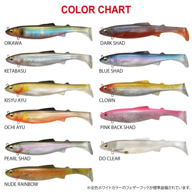 マグドラフトと対極の位置に在るマグスロウルは至ってシンプルなアクション。頭は振らず、細く(薄く)シェイプされたテールだけを左右に振って泳ぎ、極めてナチュラルに魚にアプローチします。そのマグスロウルをスーパーシャローをデッドスローに引くことを可能にさせたのがデッドスロウル。水平に近いスイミング姿勢とマグスロウルから継承のアクションレスポンスを追求したボディデザインと極薄シェイプテールがスローになってしまった魚へとことんアピールすることが出来るデッドスロースイムベイトです。※全色ホワイトカラーのフェザーフックが標準装備されています。※掲載している商品の画像は代表画像を表示しています。また実物と色が違って見える場合があります。あらかじめご了承下さい。