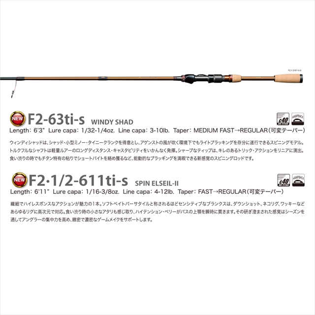 Length:6’6” Sub Name:ESTOQUE Action:Medium Fast → Regular(可変テーパー) Lure Capa:1/8 - 1/2oz. Line Capa:6 - 12Lb.