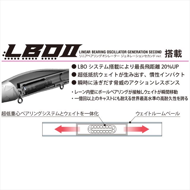 新世代の重心瞬間移動システム「LBOU」を搭載したワンテンLBO は、逆風時のキャスタビリティが飛躍的に向上し、アゲンストの爆風のなかでも安定したロング アプローチが可能。 110mm だったボディを115mm までロングテール化したことでさらに重心が最後尾まで移動、アキュラシー性能も格段に高めています。 また、LBOUによる低重心化と、作用点と力点の同軸・同期化は、リールハンドルに手をかけた瞬間からアクションが起動する、瞬時の立ち上がりを実現。 ネオジウム磁界によって固定されるベアリングウェイトは、鋭く規則性の高いジャークアクションを生み出し、異次元の領域まで高められたシャープなハイピッチ・ロールアクションは、明滅効果をいっそう際立たせています。 これまでのジャークベイトの概念を覆してしまうアイティーオーエンジニアリングの最新テクノロジーを満載した、スペシャルなONETEN です。※掲載している商品の画像は代表画像を表示しています。また実物と色が違って見える場合があります。あらかじめご了承下さい。