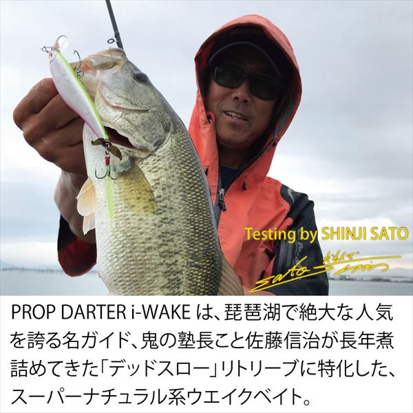 i-WAKEは、琵琶湖で絶大な人気を誇る名ガイド、鬼の塾長こと佐藤信治が長年煮詰めてきた、「デッドスロー」リトリーブに特化した、スーパーナチュラル系ウエイクベイト。従来ウエイクベイトは派手なアクションやサウンドを起こすタイプが多い中、i-WAKEはその対極を狙い、ターゲットに不本意な警戒心を抱かせぬよう「デッドスロー」で忍び寄るナチュラル・フィーディングベイトです。新重心移動システム「LBOU」を搭載したi-WAKEは、重心瞬間移動による飛躍的なキャスタビリティの向上と、これまでのルアーエンジニアリングではあり得なかった着水瞬時の泳ぎ出しの速さを誇ります。LBOUのベアリング内臓シャフト型ウエイトを「軸」とする、ロールをメインとしたアクション設定により、リアルベイトさながらの、デッドスロー・リトリーブ時の極めてライブリーな軌跡は、「プロップダーター」シリーズならではのもの。「ステイ&トゥイッチ」でも威力を発揮します。ナチュラルなアクション&サウンドを発生させる「アシンメトリー・ペラ」が、リアルなボイル&スプラッシュを演出。スレたバスに効く、「アイ・ウエイク」のプロップダーターマジックを、ぜひお試し下さい。