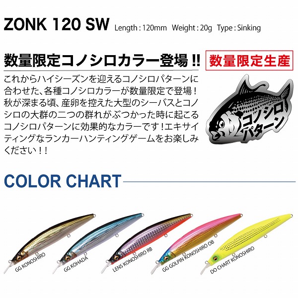メガバス ZONK120 SW(ゾンク120 SW) GG ゴルピンコノシロOB
