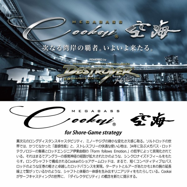 ロックショア、ゴロタやサーフ、大規模河川河口等の広大なエリアで、モンスターシーバスや青物を相手にロングシューティングで挑む、ハイパワーロングシャフトです。足元まで根が続くような難易度の高いフィールドでも、大型魚を浮かしていなし、確実にランディングに持ち込むために煮詰められた「長さ」と「強さ」をあわせ持つモデルです。持ち重りを感じないよう、適切なブランクレイヤー、グリップレングス、諸々のロッドパーツをテストで突き詰め、こだわり抜いた独自のセッティングは、およそこれまでの長尺ロッドではあり得なかった超高感度特性を10'8"の長さで実現。ショートバイトはもとより、わずかなカレントや地形変化を的確に感じ取る、優れたダイレクタビリティを生み出します。5Dグラファイトシステムによって、フルキャストでも直後にピシャリとブレが止まり、圧倒的な遠投性能とアキュラシー性能を同時に体感できる、これまでになかった異次元のロングシャフトフィールを実現。Cookaiに導入した卓越したロッドテクノロジーの数々を存分に堪能して頂ける、至極の一本です。