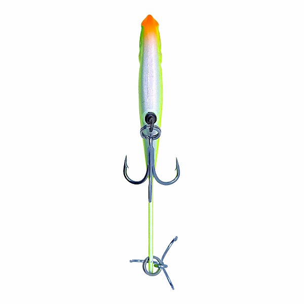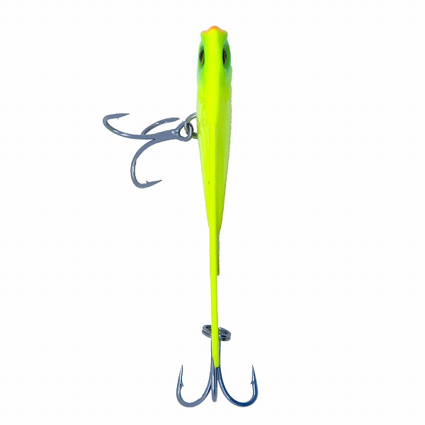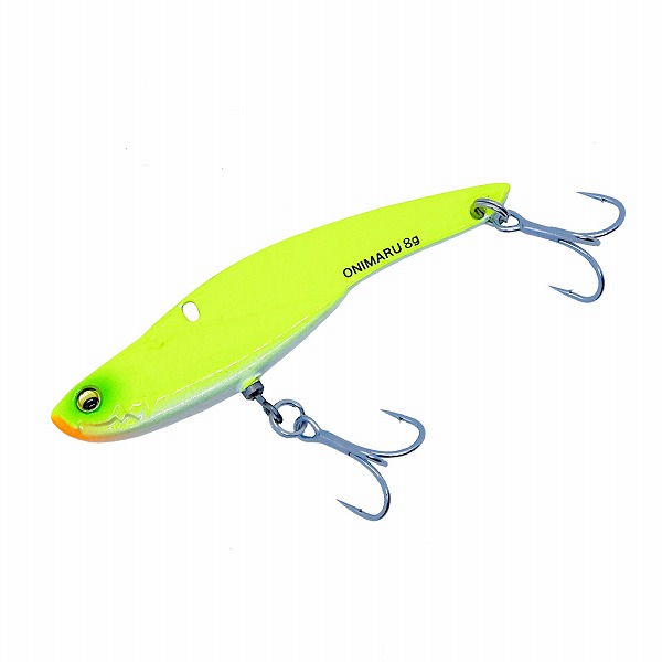 オニマルは海洋魚類の行動学による研究とテストの経験則によって、特別なバランスセッティングが施されたメタルバイブレーションの最終回答。逃走する鰯が見せるボディのレイラインをくっきりと浮かび上がらせることで、線視力に優れたシーバスや青物から最も捕食対象とされやすい、「被捕食体」としての要素をクローズアップさせています。逃走する小魚のシルエットを忠実にイミテートした水平スイミング姿勢は、いかなる速度においても一定のロール軸を保持、生命感あふれるハイピッチバイブレーションを発生し、フィッシュイーターの捕食本能を猛烈に刺激。スイベル化したフロントアイは、ファイト中の捻りやエラ洗いへの追従性を向上させ、バラシを大幅に軽減化。さらに、ラインアイポジション、フックポジション、ボディ形状、ウエイトなど、トータルバランスを突き詰めた設計により、ラインやボディへのフック絡みのトラブルを徹底的に抑えています。シーバスはもちろん、クロダイやフラットフィッシュ、青物など、あらゆるターゲットにアジャストする究極のサーチベイトです。