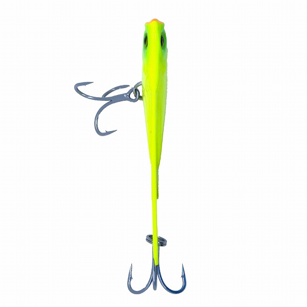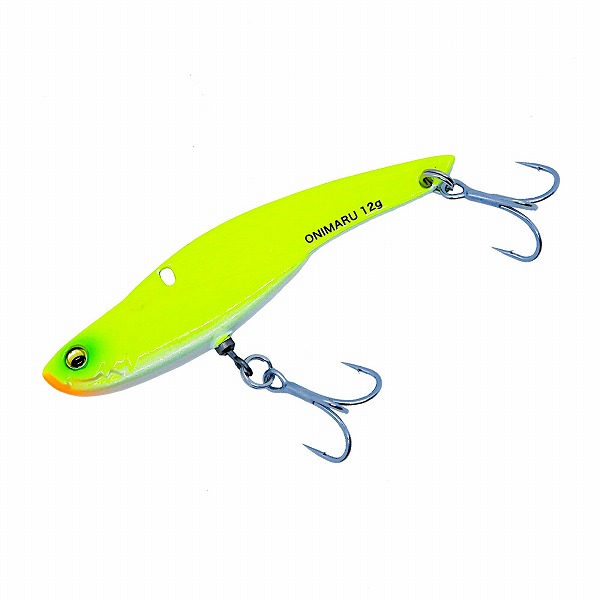 オニマルは海洋魚類の行動学による研究とテストの経験則によって、特別なバランスセッティングが施されたメタルバイブレーションの最終回答。逃走する鰯が見せるボディのレイラインをくっきりと浮かび上がらせることで、線視力に優れたシーバスや青物から最も捕食対象とされやすい、「被捕食体」としての要素をクローズアップさせています。逃走する小魚のシルエットを忠実にイミテートした水平スイミング姿勢は、いかなる速度においても一定のロール軸を保持、生命感あふれるハイピッチバイブレーションを発生し、フィッシュイーターの捕食本能を猛烈に刺激。スイベル化したフロントアイは、ファイト中の捻りやエラ洗いへの追従性を向上させ、バラシを大幅に軽減化。さらに、ラインアイポジション、フックポジション、ボディ形状、ウエイトなど、トータルバランスを突き詰めた設計により、ラインやボディへのフック絡みのトラブルを徹底的に抑えています。シーバスはもちろん、クロダイやフラットフィッシュ、青物など、あらゆるターゲットにアジャストする究極のサーチベイトです。
