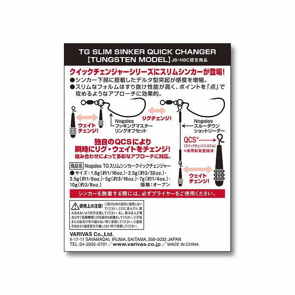 瞬時にリグ・ウェイトをチェンジできるクイックチェンジャーシリーズにスリムタイプのシンカーが仲間入りしました。素材は高比重の焼結タングステンを採用しています。シンカー下部に搭載したデルタ型突起が感度を増幅。スリムなフォルムはすり抜け性が高く、ポイントを「点」で攻めるようなアプローチに効果的。※掲載している商品の画像は代表画像を表示しています。また実物と色が違って見える場合があります。あらかじめご了承下さい。