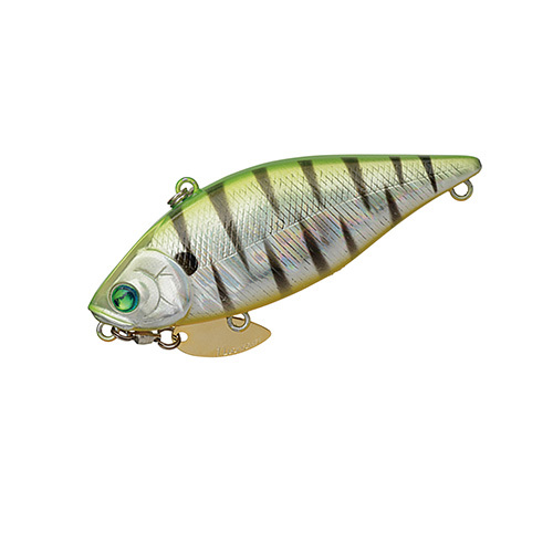 アゴにあるスモールブレードの回転抵抗によって前傾姿勢を保ちながら、狙ったレンジを長くキープ。ボディの振動によって、回転しているブレードが不規則に揺れ、より高いフラッシング効果を実現。程よいピッチの高速リトリーブでブレードの回転抵抗に泳ぐ抵抗が負け、ルアーがフッと抜けるような瞬間を生み出します。この抜ける「間」が「喰うキッカケ」となりバスに口を使わせます。高周波を生み出しバスを呼ぶラトルサウンドがアピール力を増量。バスのヤル気を引きだします。変化のない泳ぎで喰うタイミングの演出力に乏しかったバイブレーション