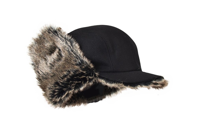 厳冬期での使用を想定し温かみのあるフェイクファーを使用したアビエーターキャップ 風が強い日に耳当てを下げることで耳の保護に