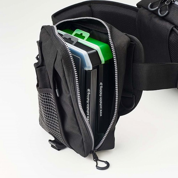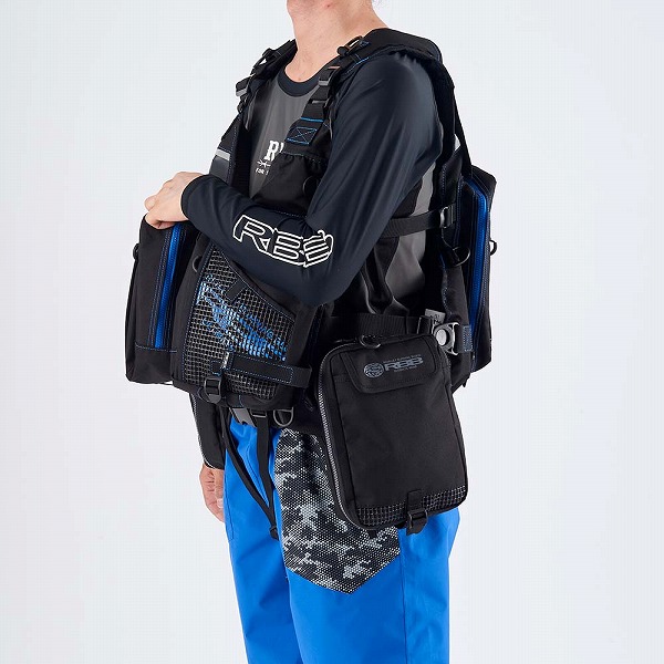 ベルト本体にはルアーケース、プライヤーが収納可能なポケットが2個付属。ゲームベストとの組合せを想定しファスナーは前面側に設置。付属のテープを取り外すし、RBBエアーライフポーチの取り付けが可能。夏場の暑い時期にはサーフサポートベルト+自動膨張式ライフジャケットの組合せで軽装で快適な釣行が可能。