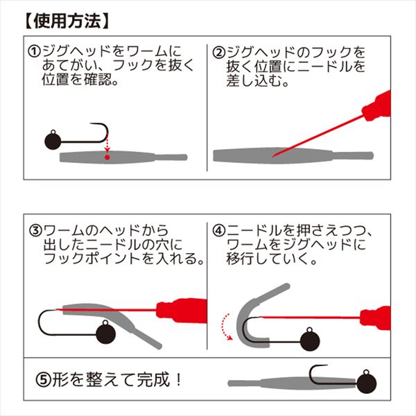 ワームをジグヘッドに真っすぐ刺せないイライラを解消する画期的な便利ツール。ライトソルトジグヘッドのリギングの際に使用する他にも…絡んだPEラインを解く/ホバスト&ミドストのフックセット/ネイルシンカーを入れる前にガイドラインを作る/小型魚のエア抜き、といった様々な用途に幅広く使える!※掲載している商品の画像は代表画像を表示しています。また実物と色が違って見える場合があります。あらかじめご了承下さい。