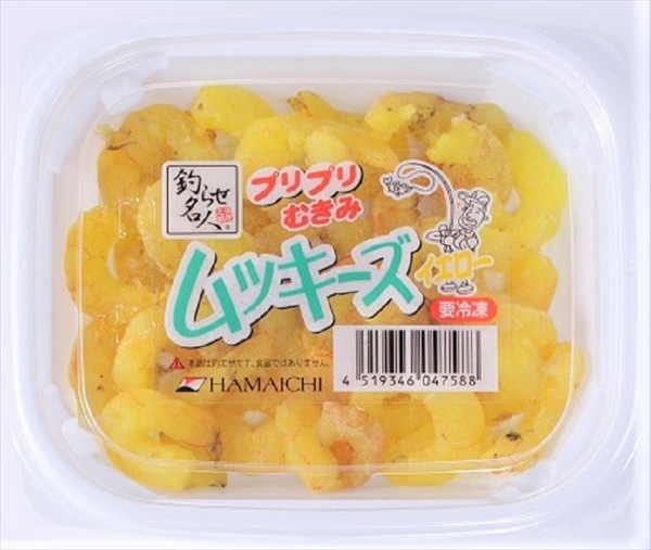 ムッキーズは、良質なエビのむき身原料を赤・黄・紫の食用色素で着色しています。色が付いているだけで臭気や肉質はエビ本来のままに。エサ取りに対する耐性がアップしています。  対象魚:メジナ(グレ/クロ/クロメジナ)・チヌ(クロダイ/黒鯛)・マアジ(あじ/ひらあじ/豆アジ)・マサバ(サバ/ヒラサバ/本サバ/ゴマサバ)・カサゴ(ガシラ/ホゴ)・海上釣堀でのエサ など  冷凍品エサは、獲れた時期によりサイズ・色・大きさが異なりますのでご了承願います