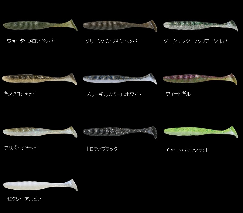 低速〜高速リトリーブに対応、ハイピッチウォブリングアクション?シャッドテールワームに求められる要素は、抜群の集魚能力と喰わせ性能。そしてあらゆるリグへの汎用性と、リーリングスピードの対応幅の広さであると考え、それらを全て凝縮したアイテムが リズムウェーブ です。一見シンプルにも見える形状ですが、テールの厚みや、ボディからテールまでの長さなど、全てのバランスを何度も見つめ直し、たどり着いた形状です。アクションはハイピッチなウォブリング中心のアクション。このアクションによる恩恵は、スロー〜ファーストまであらゆるリーリングスピードへの対応を可能にしているのみならず、広範囲からバスを呼び寄せ、違和感を感じさせずにバイトまで至らせます。また、リグへの汎用性も高く、ノーシンカーリグでの水面サーチや、近年様ーなフィールドで多用されるようになったスイミングジグメソッドはもちろんのこと、スイミングテキサスリグや、ジグヘッドリグ等、スイミングアクションを必要とするリグには幅広く対応します。ジャッカルが誇るシャッドテールワームのニュースタンダードを是非ご体感ください。「2017NEW リズムウェーブ5.8inch」リズムウェーブにシリーズ最大サイズとなる5.8インチが追加になります。単にシェイプだけを大きくしたわけではなく、ボディの太さは抑え長さを伸ばすことで幅広のボディとテール全体で水を掴み、シリーズ最大のくねるアクションを実現することが出来ました。※掲載している商品の画像は代表画像を表示しています。また実物と色が違って見える場合があります。あらかじめご了承下さい。