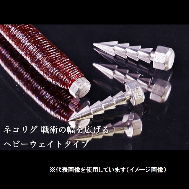 ネイルシンカーにヘビーウェイトモデルが登場。従来の刺しやすく抜けにくい多段構造はそのままに、ワームと一体感を演出するヘッド部分が特徴。ヘッド部分がボトムやストラクチャーと接触することで感度に優れ、アングラーに情報を伝達。さらに、水面を覆うようなマット状のゴミやベジテーションなども、そのウェイトで貫通可能に。今まで届かなかったディープレンジやカバーに対し、ネコリグでアプローチすることが可能となります。※掲載している商品の画像は代表画像を表示しています。また実物と色が違って見える場合があります。あらかじめご了承下さい。