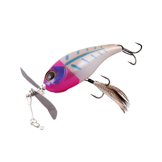 川島勉がトッパー時代から愛用しているスウィッシャーを現代流にアレンジした新しいトップウォータープラグがチョップカットです。段違いに設計されている特徴的な大きな”チョップカットプロップ”は、前方の刃が水を噛むときに発生する泡を、後方の刃が瞬時に切り裂くことで、”ポロポロ”と甲高いサウンドを発生します。独自のサウンドによる強烈なアピール力が特長です。また、プロップは左右非対称の形状に設計されており、異なる遠心力で回転。その際に発生する大きな振動がプラスチックボディに生命感を宿します。ただ巻きではデッドスロー?ファーストリトリーブまで幅広く対応し、トゥイッチによるドッグウォーク、ジャーキングなどもこなす多彩な攻めが可能です。投げて楽しい、釣って楽しい新機軸スウィッシャー型トップウォータープラグの誕生です。※掲載している商品の画像は代表画像を表示しています。また実物と色が違って見える場合があります。あらかじめご了承下さい。