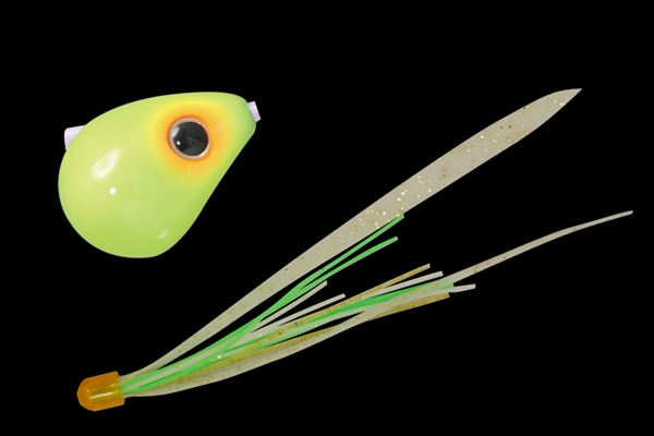 潮の流れの速いエリアを想定し、誕生した”爆流”鉛式ビンビン玉スライドが、海老パウダーと海老オイルを配合し味と匂いを加えた新素材「T+(tasteプラス)ラバー」ネクタイとスカートを身に纏いリニューアルしました。激流や深場の攻略はもちろん、水流抵抗を強く受けるドテラ流しやキャスティングでの使用にも最適で、左右にふれるスラローム軌道のアクションを生む特徴的な流線形のヘッド形状がパーツの暴れを軽減し、丸玉では困難であった200g超の重量級ラインナップが可能になりました。スカートを一方向に整え、過剰なパーツ暴れを更に軽減するバックファイヤーキャップを搭載。パーツ交換方法も容易で、揺れる船上においても快適に作業を行うことが可能です。※掲載している商品の画像は代表画像を表示しています。また実物と色が違って見える場合があります。あらかじめご了承下さい。