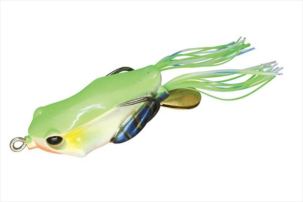 コンパクトサイズながらも抜群のアピール力で実績の高いフロッグルアー”カエラ S2 BEAT”は、狭いスポットで細かく誘いをかける為に浮き角度を立ち姿勢に設定。頭を上下方向に動かすダイビングアクションで誘います。ボディ後部にセットされた小さな2枚のツインブレードが、擦れ合うスクラッチ音と反射光を発生させることで、コンパクトサイズながらもフルサイズフロッグに負けないアピール力を誇ります。