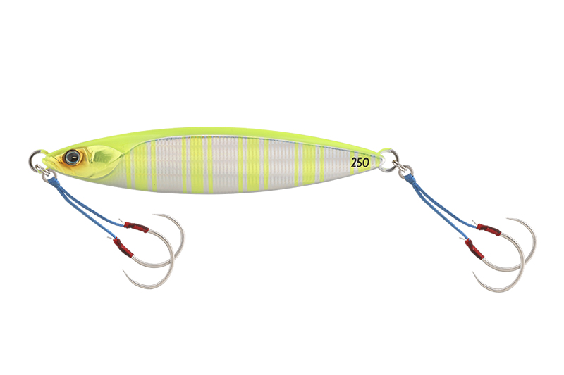 スローフォール特化型のバンブルズジグ。バンブルズジグ共通のフォールアクションへの移行レスポンスをさらに向上させ、滞空時間を延ばしたスローフォール特化型ジグです。速いフォールでは追いきれない魚にじっくり見せてバイトへと導くことが出来ます。特徴的なボディシェイプ。片面は大きく張り出し、もう片面はカップ状になっている左右非対称ボディシェイプ。フォール姿勢への移行を速く、フォールスピードを遅くを両立し得られる長いフォール時間は、じっくりと魚にジグを魅せ続け食わせの間を確保します。様々なアクションに対応。スローピッチジャークはもちろん、ハイピッチジャークやジャカジャカ巻き後のフォールでも、一瞬止まったような浮遊感を演出し食わせの間を作ります。スローなフォールは多くの魚種に効果的。ブリやサワラなどの青物から、速い動きのジグを捕食するのが苦手なハタやカサゴといった根魚、そしてヒラメや真鯛などにも効果的です。