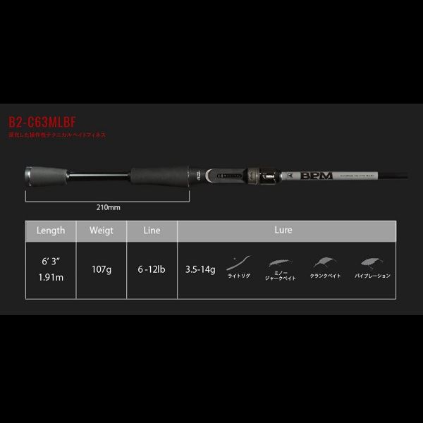 軽さと操作性に磨きをかけたベイトフィネスモデル。ライトリグのキャスタビリティと操作性を突き詰めた6ft3inのレングス設計。ぶれることなくキャストが決まり、繊細かつ高感度なチューブラ―ティップで操作しながらも、魚を掛けた後もしっかりと寄せることができる専用モデルです。