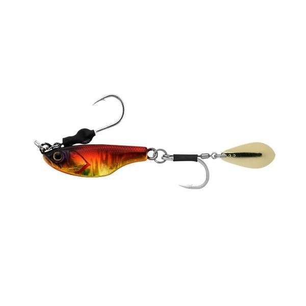 縦、横ともに厚みを持たせたボディ形状によりコンパクトシルエットを実現。ルアーのサイズにシビアで攻略が難しいとされるマイクロベイトパターンに威力を発揮します。また、小型のブレードを採用することで、マイクロベイトのチカチカとした細かいフラッシングを再現しました。