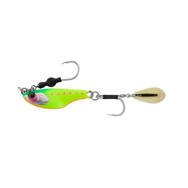 前方腹側に重心を持たせたボディ形状は、スイミング姿勢を安定させ、抜群の飛距離と直進性能を発揮します。また、小型ブレードは空気抵抗が少ないため、通常のジグに引けを取らない射程範囲を誇ります。