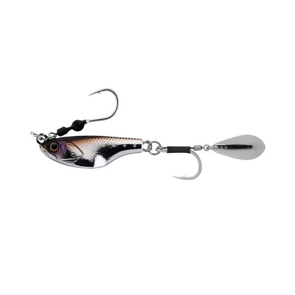 縦、横ともに厚みを持たせたボディ形状によりコンパクトシルエットを実現。ルアーのサイズにシビアで攻略が難しいとされるマイクロベイトパターンに威力を発揮します。また、小型のブレードを採用することで、マイクロベイトのチカチカとした細かいフラッシングを再現しました。