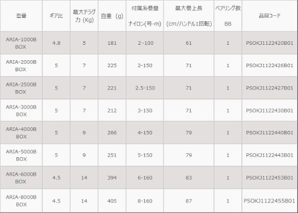 オクマ 糸付きスピニングリール ARIA アリア 1000B BOX (糸付き・箱あり)