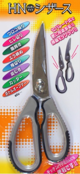通常のハサミとして、また、のこぎりカッター、皮むきナイフ、骨切、硬いものを砕くなど、多彩な用途に対応できます!!キッチンバサミとしてもお使いいただけます。