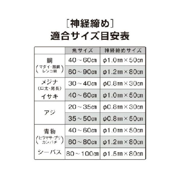 魚の死後硬直を遅らせ鮮度を保ちます。形状記憶合金なので丸めて収納できます。魚種に合わせて長さ・合金の太さを選らんで下さい。※掲載している商品の画像は代表画像を表示しています。また実物と色が違って見える場合があります。あらかじめご了承下さい。