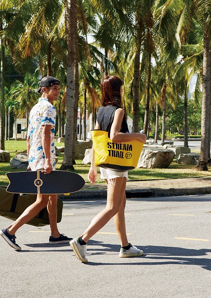 シンプルなバケツタイプのトートバッグです。ボトムとサイドはウエルダー加工を施していますので、水に濡れたところにバッグを置いても水の侵入はありません。