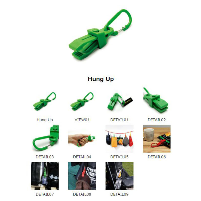 HUNG UPはクリップにカラビナが付いた便利なアイテム。アリゲータマウスにより、強いグリップでしっかりと掴むので、いったん挟んだものはめったに滑りとれることはありませんが、片手でボタンを押しながらスライドさせると簡単に取り外しできる仕様になっています。帽子や手袋、ゴミ袋やハンドタオルなどを挟み、付属のカラビナでバッグやベルトループなどにぶらさげ使う事ができます。ファッションアイテムとしてももちろんですが、実用性が高いので、アウトドアやスポーツ、自転車、ガーデニング、DIYなど様々なシーンで活躍します。