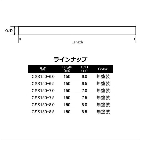 カーボンソリッドスティックはその名の通りストレートの「棒」です。ロッドの継ぎ修理やグリップエンドの延長、そして2ピース化など多様に使用できるマルチスティック。外径(太さ)は3mm〜8.5mmまで0.5mm刻みでラインナップし、長さ120mmは外径3mmから5.5mmまで。150mmは外径6mmから8.5mmまでの計12サイズ。素材は24Tカーボンを使用し、チューブラーカーボンに比べ、柔軟且つ強度あるソリッドです。※2ピース化、継ぎ修理など加工を行われる場合は、必ず全て自己責任で行ってください。※2ピース化などへのロッド改造等は行っておりません。あくまでもパーツだけの販売になります。