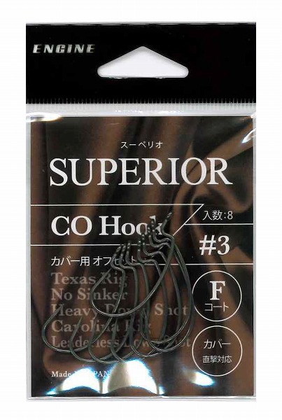 JB TOP50 小森嗣彦を中心に開発がすすめられたNEW HOOK ブランド SPERIOR【スーペリオ】。国内最高峰トーナメントTOP50 年間チャンピオン3回、バサクラ優勝2回を誇るその実績と経験値からフィードバックされたワンモアフィッシュを絞り出すフックシリーズ。【COフック(カバーオフセットフック)】カバー用オフセットフックの王道を極めたシェイプデザイン。各パーツセクションを吟味、トータルバランスを極限まで導き出した形状がパワーゲームでの使いやすさを実現。さらにラインの結び目保持&ズレ抑制効果のFLアイ採用によりフッキング効率が格段にアップ。