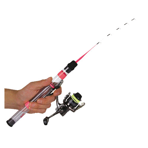 お好みの穂先に交換できる!ロッド+リールのワカサギ釣りセット!グラス製扁平穂先を使用したドーム船、氷上釣り対応のワカサギ専用ロッドにメタルボディの超小型スピニングリールを搭載したワカサギ釣り専用セット。斬新なデザインのスケルトングリップは収納時の穂先の保護にも役立つ優れもの。使用時はグリップ内に収納した穂先を取り出し逆さに継ぐだけ。穂先は、通常のグラスソリッドではでにくいアタリも板状に薄く削った扁平穂先で鮮明にとらえる事が出来、バラシも軽減。アクションは状況に合わせ使用できるようライトとミディアムライトの