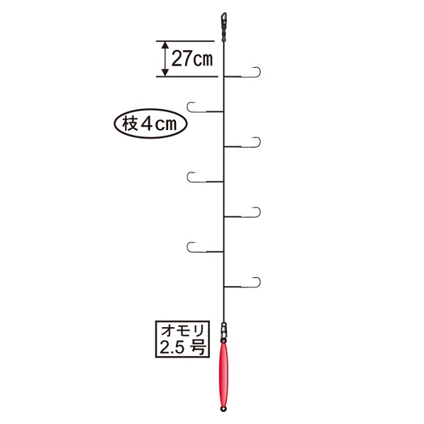 品番:45190 全長2.16m チカ7本 白(1組入)長オモリ付 針5号−ハリス0.8