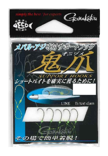 ショートバイトを確実に獲るために!メバル・アジ専用サポートフック登場!!ジグヘッドやシングルフックにワームを装着後、フックのベンド部にセットすることで、ショートバイトをフックアップまで持ち込める確率が格段に高くなります。ワンタッチで脱着可能なため手返しを損なわず、限られたチャンスを 逃しません。チモト部の夜光塗りが対象魚に確実にアピールします。※掲載している商品の画像は代表画像を表示しています。また実物と色が違って見える場合があります。あらかじめご了承下さい。